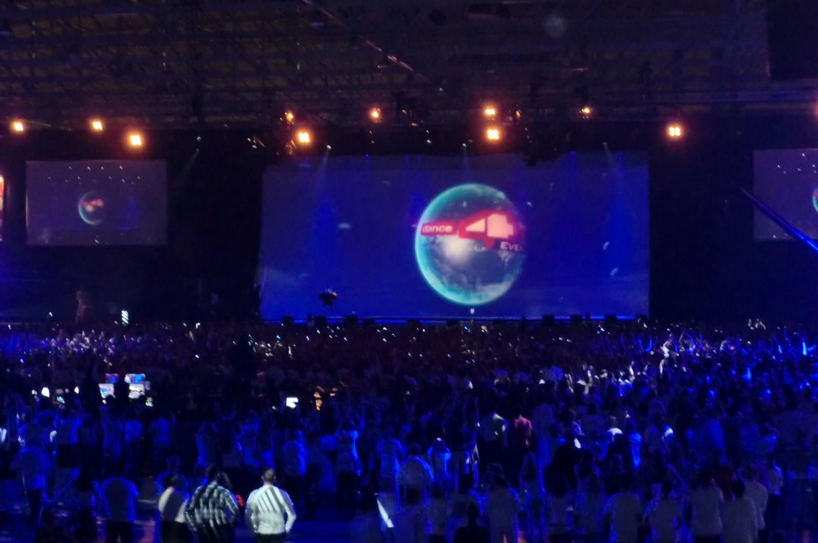 The night opened with Don Diablo, who did a terrific job. His great tunes were met by a frenzy crowd that consists of mostly teenagers. I was with Amenda in the back of the Rotterdam Ahoy stadium. It was a kind of a VIP section for interests, donors and partners. We were given wine and food around dinner time. I must admit I did not fully use the opportunity to network, which I should have done. Nevertheless I spoke with couple of people and I met the man behind the Dance4Life digital campaign. Around half past seven the moment was finally there. We were finally live connected to the world. On several big screens we saw the teams from 27 different countries, live and pre-recorded, dancing for life. We greeted each other and then did the Dance4Life drill together, the worldwide Dance4Life dance.