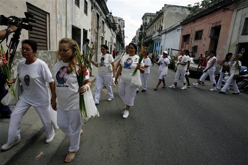 Soon after the Black Spring, women relatives and friends started to gather at the St. Rita’s Church in Havana every Sunday. The ladies, dressed in white and holding flowers, first pray for the imprisoned dissidents. As a form of protest against the arrest of their loved ones, they take a silent walk in the streets of Havana after each mass. With this non violent approach the ladies in white have been attracting supporters from all over the world. Amongst the famous people who publicly expressed their solidarity to the movement are US President Barack Obama and singer Gloria Estefan. For the last 7 years the weekly demonstration has been the same. But last week the ladies became international news when members of the Ladies in White forcefully got arrested by the Cuban police. They were on their way to the house of Orlando Fundora, who had been on hunger strike, when the police stopped them and arrested the ladies when they refused to leave sight. Amongst the arrested was Reyna Tamayo. She’s the mother of Orlando Zapata Tamayo, a dissident who died from an 85-day hunger strike on February 22nd, 2010. He demanded the release of prisoners of conscience. His death caused international uproar.